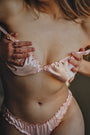 Un soutien-gorge ultra doux en délicat tissu en satin rose.L'élastique soutient. Fermeture à crochet et œillet. La longueur des bretelles est réglable.